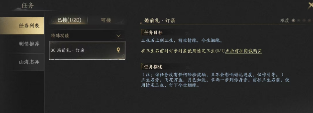 要想结婚,首先要是不同性别的两个角色,等级都达到35级以上,友好度达到5000以上,这是硬性条件。只要满足了这些条件,双方沟通好之后,就可以组队前往三生石处领取定亲任务。一方对另一方使用道具情定三生,对方在60秒内点击确定及定亲成功。在定亲成功之后,好友列表中会增加定亲标识,定亲之后才可以去申请结婚。三生石的数量比较多,在九黎、巴蜀等都有分布。九黎的三生石是在丹朱村,巴蜀的是在女娲宫,自动寻路前往之后就可以操作。