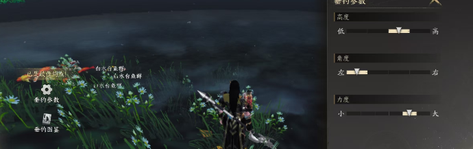 至于操作其实非常简单,在界面的左下角打开功能,找到垂钓,点击之后就可以自动前往附近最高等级的钓鱼区。如果角色可以在此水域垂钓,那么就直接使用垂钓指令,就会进入到垂钓的界面中。这里需要提前设置一些参数,包括调节垂钓的高度、力度和角度。当指针处于金色区域时,上钩的几率是最大的。