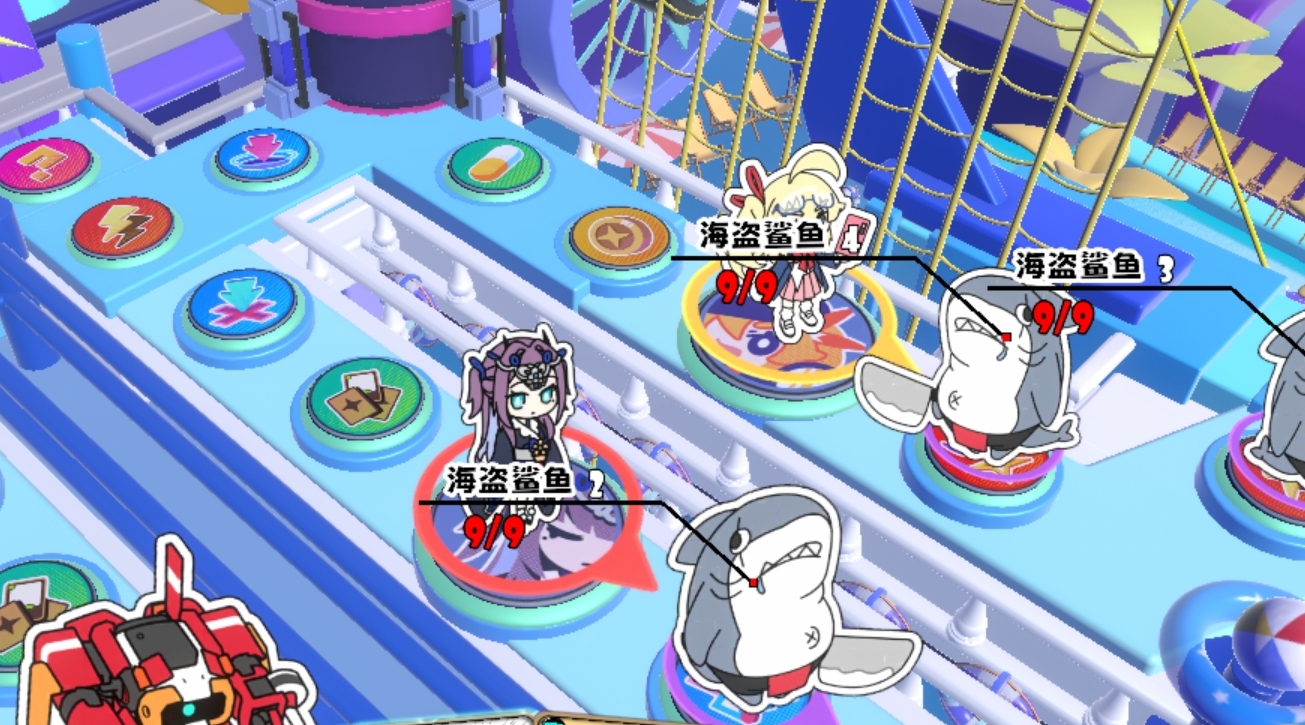 星趴梦想号是张没有太多机制的地图,因此这张图在玩法上主要以战斗为核心,其对局任务为击败4/9只海盗鲨鱼、击败2名海盗精锐,且在玩家完成击败海盗精锐的任务后,会令boss海盗王嘎呜减少6点防御。开启对局后,游戏会在地图上刷出4只海盗鲨鱼,它们的血量都比较低,人们利用初始获得的手牌就能将它们轻松解决,完成第一项任务,但各位也要注意下自己的行进路线,确保自己行走的方向能遇到海盗鲨鱼,以便顺利地将它们清除。