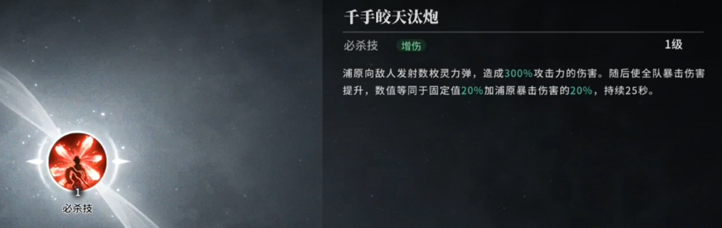 浦原喜助的必杀技就更厉害了,浦原喜助会朝着目标发射千手皎天汰炮,不光能造成可观的伤害,还能提升全队的暴击伤害,而且这个效果会持续一段时间。这意味着开大招之后整个队伍的输出能力都会有明显提升,这也是为什么很多玩家说他是辅助位中的核心角色。