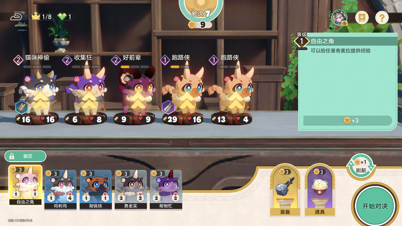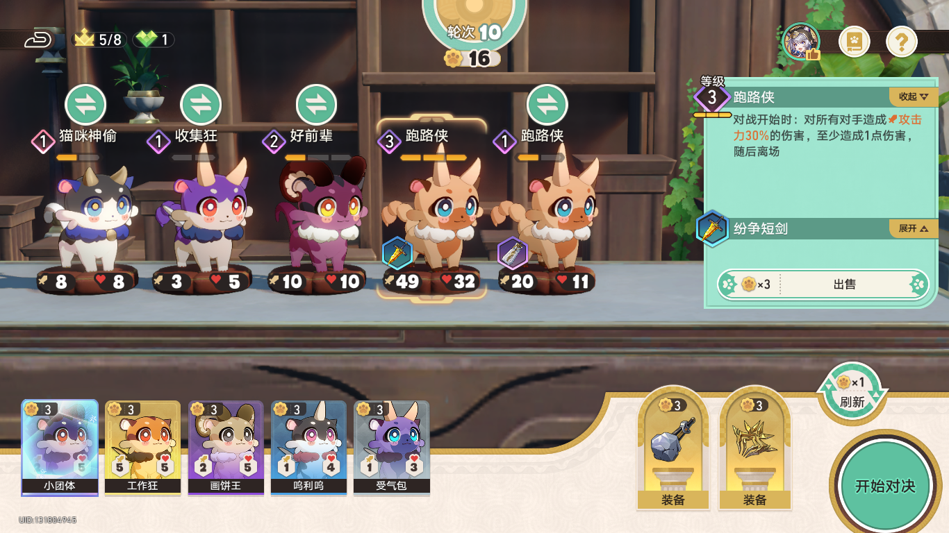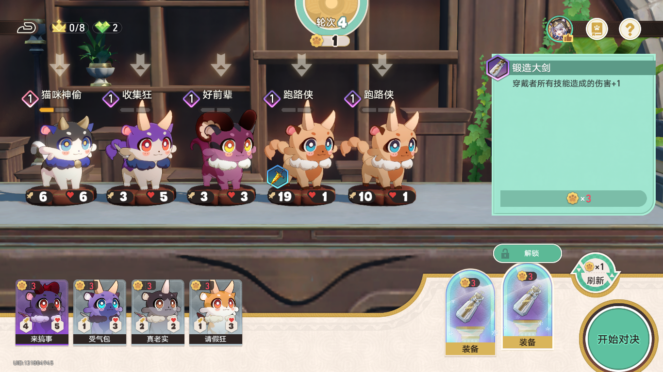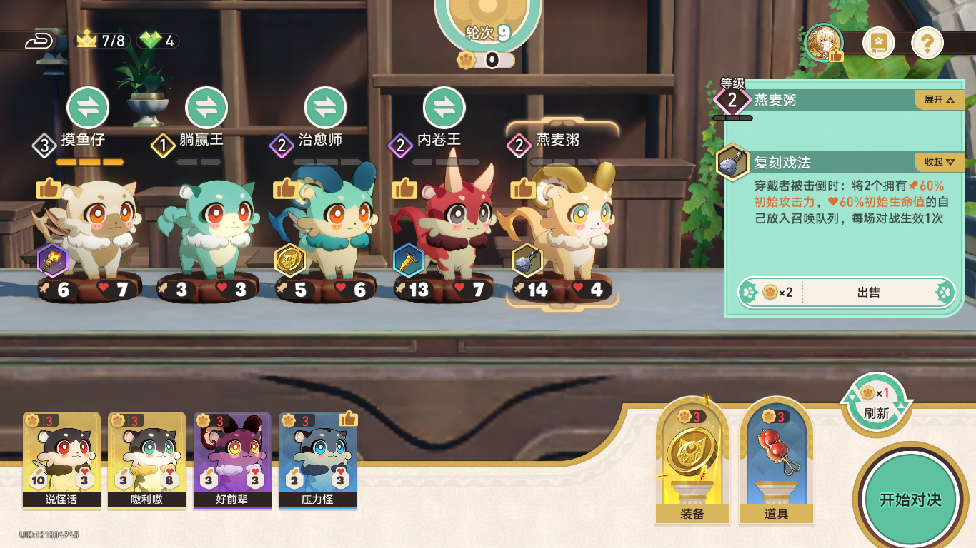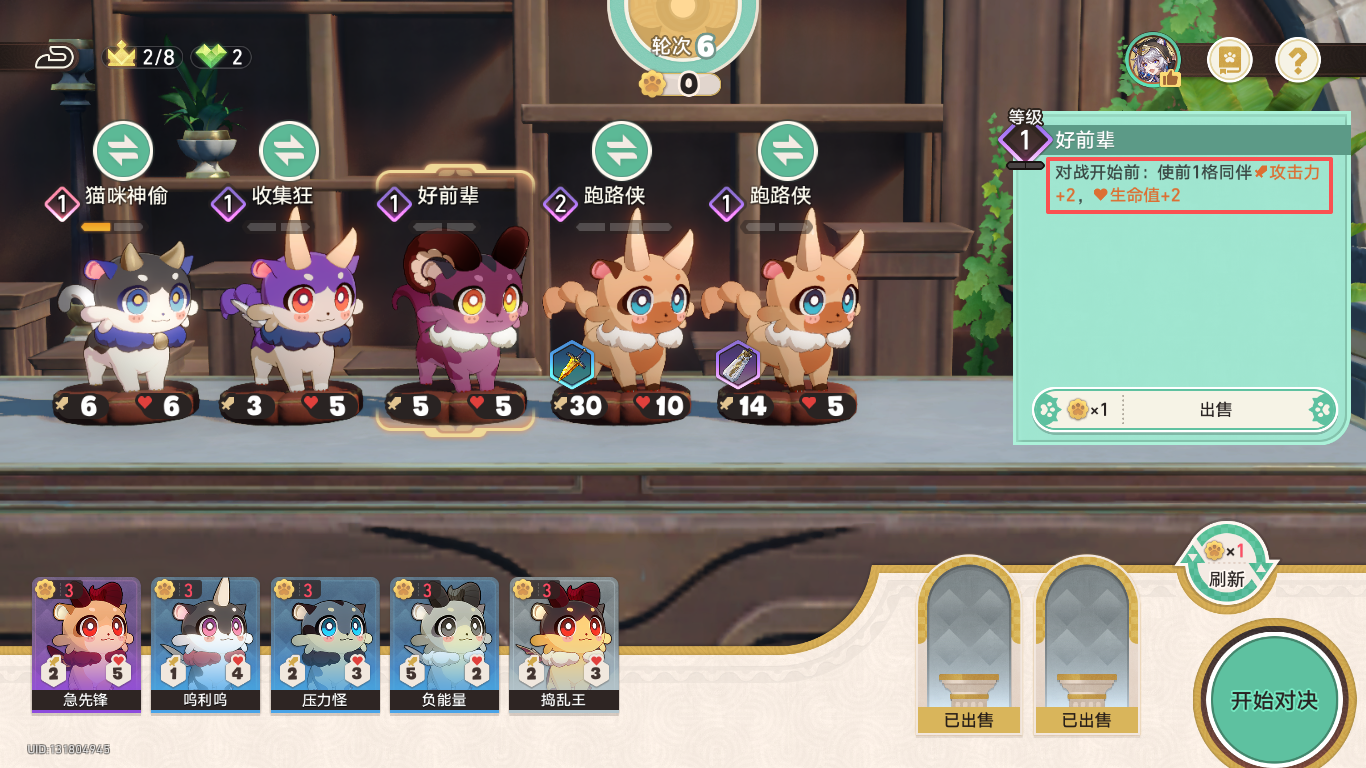 在刷新的过程中如果拿到【收集狂】及时上阵,购买道具就随机给我方一个奇美拉永久可以增加攻击力和生命值
