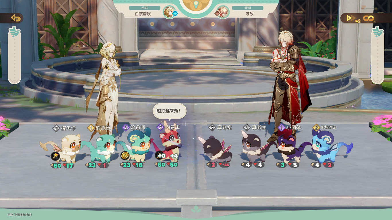阵容一(万敌和海瑟音这俩召唤的奇美拉太多)建议用比较强力的主C阵容:阿格莱雅的【燕麦粥】(核心装备:复刻戏法)【内卷王】【治愈师】【摸鱼崽】【小夸夸】(或者其他任意奇美拉)
