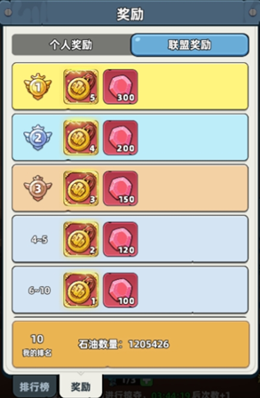 排行奖励分为个人奖励和联盟奖励,个人排名第一的玩家可以获得[石油镇·2跨领地](PVP战斗开始4秒内,我方全体可累计免疫10次伤害,免疫伤害结束前获得15%PVP伤害增加,结束后获得15%PVP伤害减免,持续8秒,该效果每30秒可触发一次)。