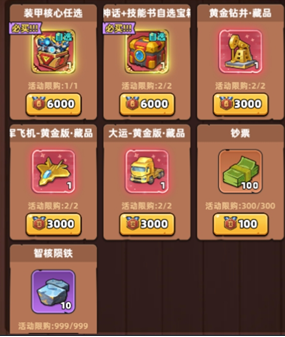 商店优先级为藏品黄金三件套,装甲核心和神话+技能书可以不着急,毕竟达到6000个石油币很难,况且石油币会在活动结束后,按照商品售价从高到底自动兑换。