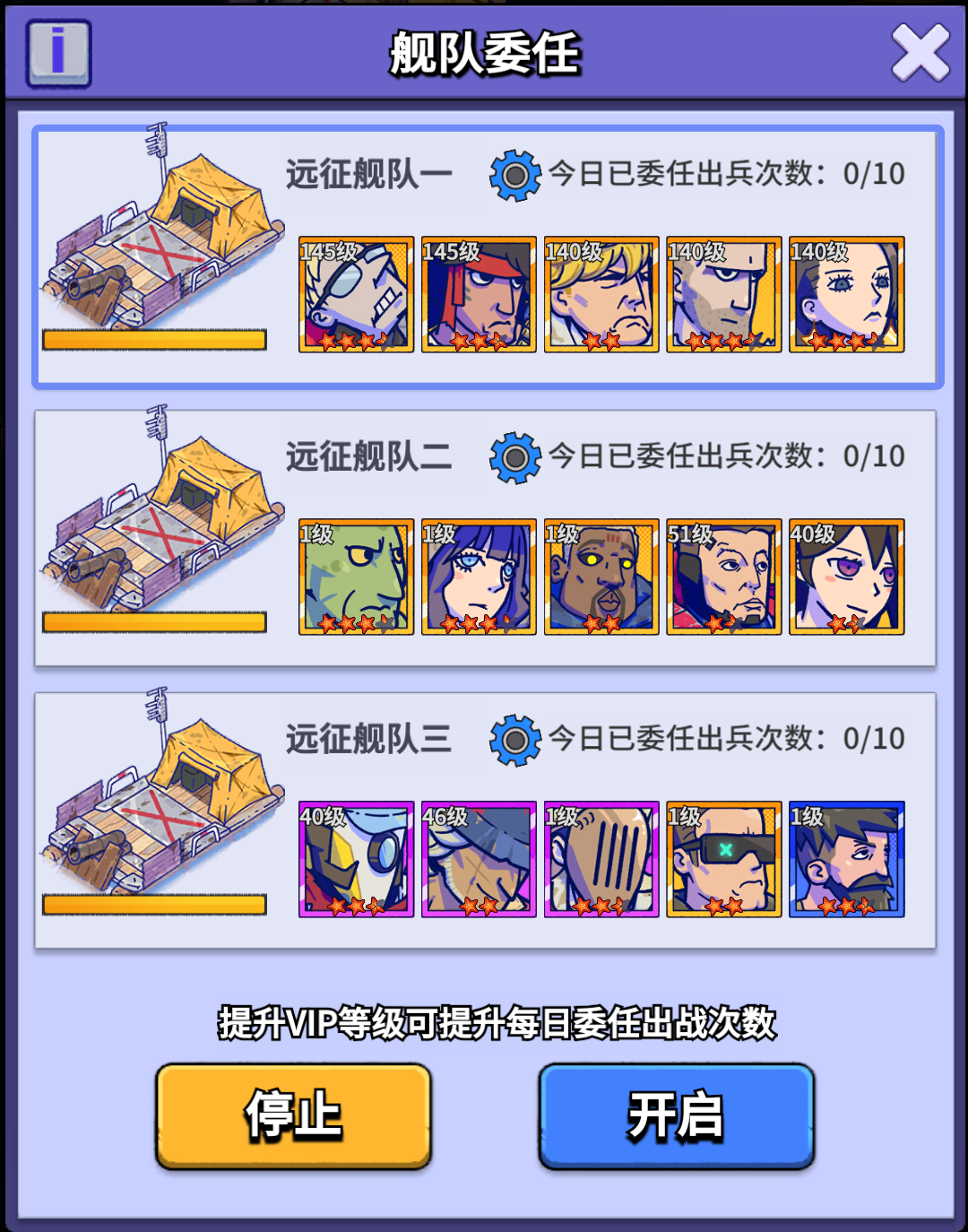 ③ 玩家VIP等级到达VIP3即可解锁舰队委任功能,自动参与城战,舰队耐久低于1600时或者委托结束后,会进行自动修复,若还有委托次数则在修复后继续出战。