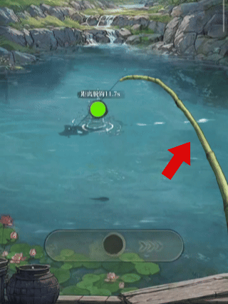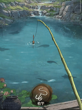 第四步:当有鱼不停触碰鱼饵时,说明鱼上钩啦!此时点击【收竿】。