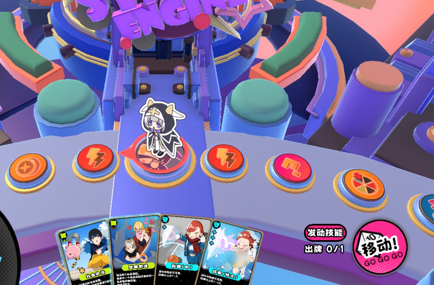 在实际对局中,阿兰娜的通用打法聚焦于“控伤保续”:通过主动技能规避风险,维持无伤状态链,持续叠加被动增益;一旦被动被中断(如意外承伤),应迅速切换至手牌输出模式,避免近战交锋。在标准模式中,可采用游走策略,主动远离高冲突区域,待被动重置后再切入战场;合作模式下,其无视陷阱特性尤为珍贵——既能安全抵达关键格子触发增益事件,亦可在潜能激活后,利用主动技免疫特性撞击具备自毁机制的怪物,规避爆炸反伤,高效清理高威胁目标。
