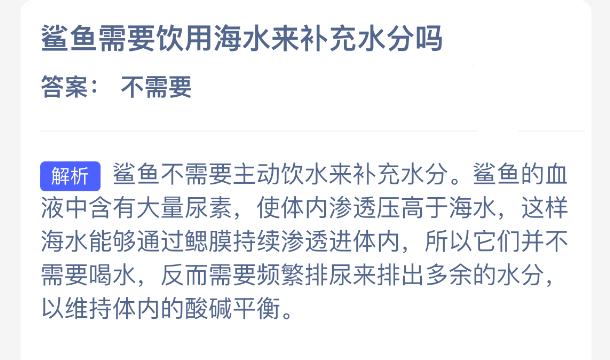 以上就是鲨鱼需要饮用海水来补充水分吗?神奇海洋今天答案最新2026年1月8日分享,更多相关攻略内容,请点击关注3DM手游网更新!