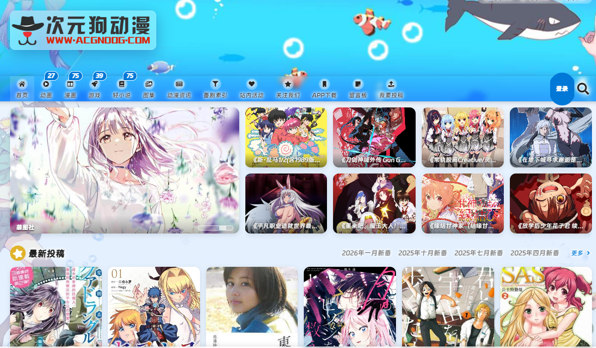 次元狗动漫网页版官网入口:https://www.acgndog.com/。次元狗动漫是一款聚合动漫、漫画、小说及游戏资源的综合平台,提供细致的分类与智能搜索功能,便于用户快速查找心仪内容。平台不仅持续更新番剧资讯与资源库,还支持收藏管理和社区互动,让二次元爱好者能轻松追踪作品、交流分享,享受一站式的追漫体验。