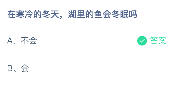 以上就是在寒冷的冬天,湖里的鱼会冬眠吗,支付宝蚂蚁庄园2026年1月12日答案最新,更多精彩内容,请点击关注3DM手游网更新!