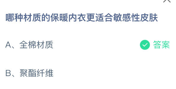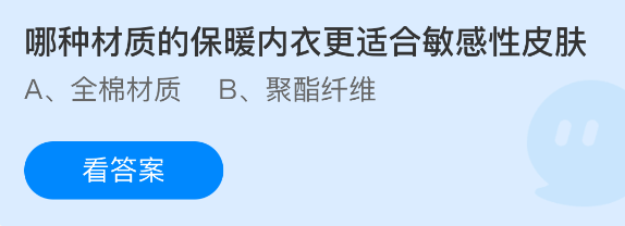 哪种材质的保暖内衣更适合敏感性皮肤?支付宝小鸡课堂开课啦!每天花一分钟答题赚饲料,喂喂小鸡就能贡献爱心啦!轻松又意义十足!2026年1月14日蚂蚁庄园的小鸡课堂题目正确答案是【全棉材质】,全棉材质的保暖内衣更适合敏感性皮肤。