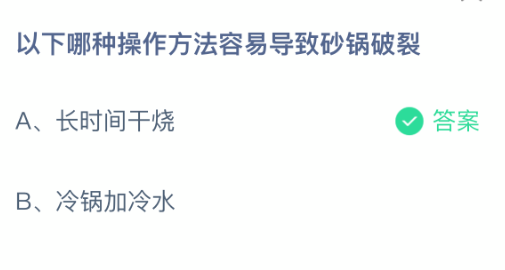 以上就是以下哪种操作方法容易导致砂锅破裂?支付宝蚂蚁庄园2026年1月14日答案最新,更多相关攻略,请关注3dm手游网更新!