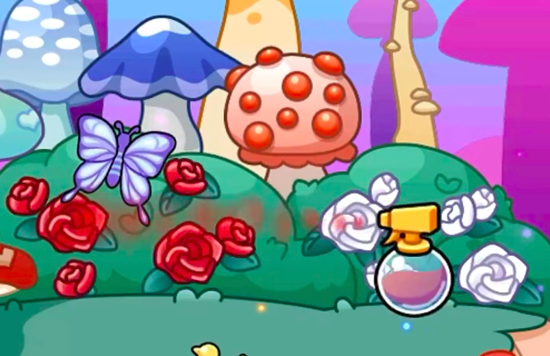 第一步先前往密林小屋寻找到染色喷壶,将玫瑰花丛全部染成红色,之后就会吸引来一只可爱的花精灵,等待花精灵将所有玫瑰花,蜂蜜采集完毕后,会从魔法书当中自动掉落两颗宝石。一颗是红宝,一颗是蓝宝,还有一个护盾,玩家将这些重要资源全部拾起。