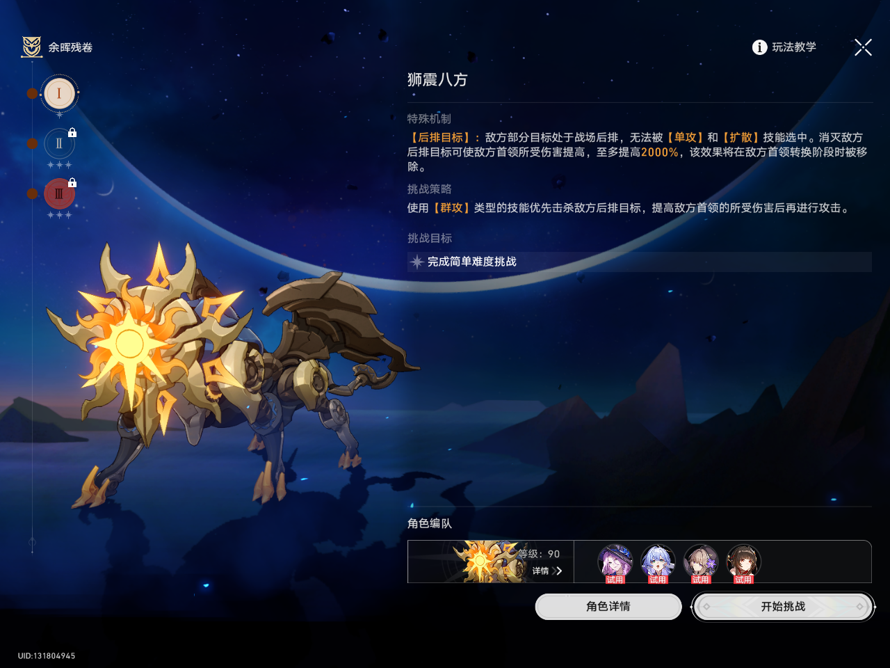 在与「狮震八方」任意难度的战斗中,我方目标累计消灭15个[后排目标]。