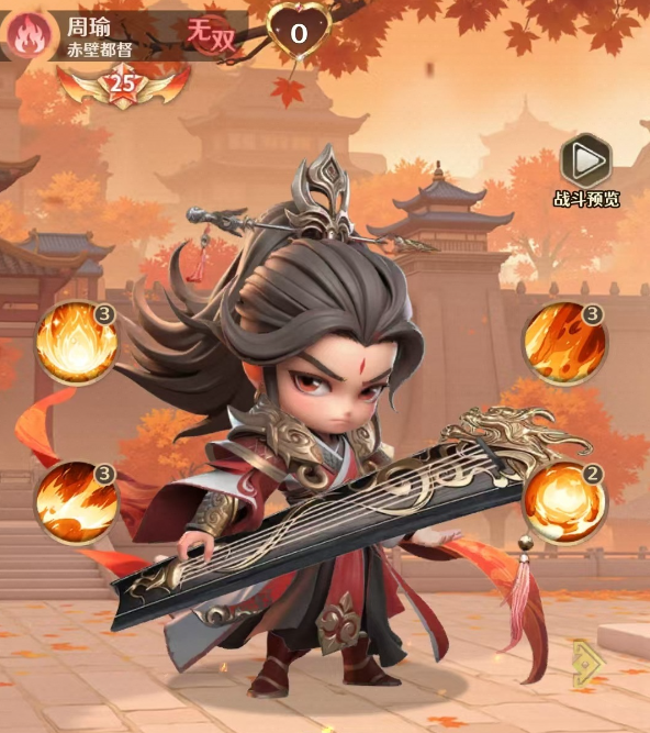 周瑜在《格斗三国志》中定位为火系无双法师,擅长灼烧、嘲讽与群体暴击。其技能可对敌方施加持续灼烧并概率触发嘲讽,大招能根据目标身上的灼烧层数大幅提升暴击率与暴击伤害。推荐围绕灼烧体系进行阵容搭配,可与许褚、蔡文姬、马超、夏侯惇、太史慈等武将协同,通过叠加灼烧状态与控制效果,持续压制敌方血线并增强爆发能力。