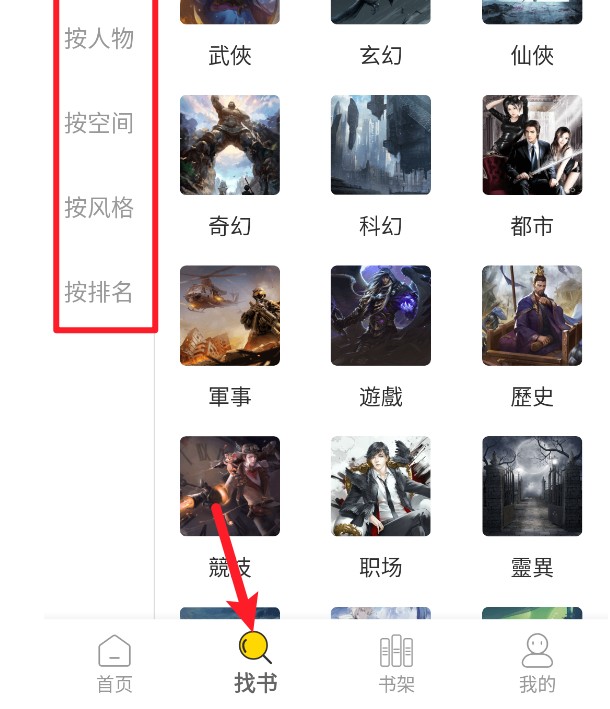 5、返回主页进入书库页面,可以根据类别、剧情、风格等选择资源。