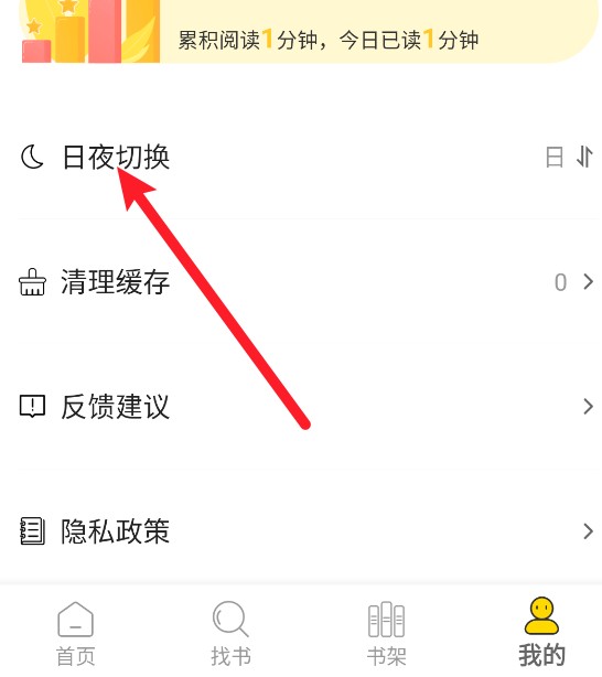6、最后在我的页面,可以切换夜间模式追书。