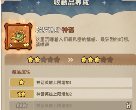 在《冒险之星》中,藏品提供全局属性与功能加成。核心推荐三款:①聆梦神灯:增加神话英雄上阵位,新手自选必拿,建议优先升至2星解锁4位置;②增辉瓢虫:囤银币可获得利息(上限200);③赞美歌唱机:保持100以上银币可提升输出,后期必备以维持战力。