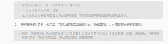 2. 购买「协议定制」的金额将根据【衍质源石】返还规则获得对应的【衍质源石】返还,所返还的「通行证申请·定制」在使用激活后,无法再次获得【衍质源石】。