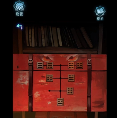 9、结合动物剪纸和电话语音两处的线索,可知:兹=3,纽=5,仵=6,茂=4,震=1,起=2;以此来调整柜门的滑块机关到如图所示状态,打开柜门.