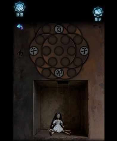 10、当调谐按键和天线均装备齐全,可按照巷子窗户内的窗花形状及顺序线索进行调频,顺序为:圆形、方形、五边形、三角形,调频正确,收音机开始播放内容,从语音中获得方位线索:子居正北、午居正南、酉居正西、卯居正东.