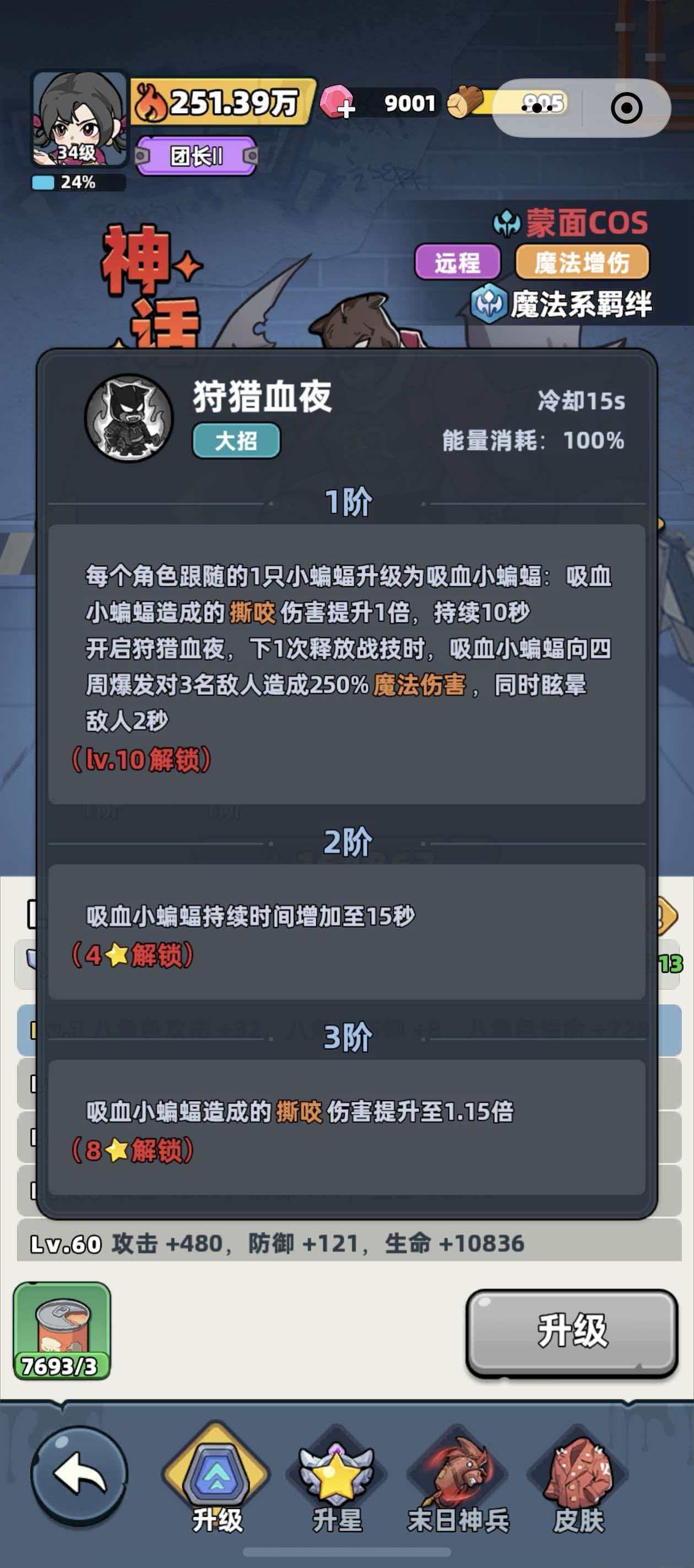 蒙面cos所属的远程职业特性为所有的伤害都能够增强25%,而幸存者特性则是可以让自身打出的魔法伤害增强10%,他的技能分别是战技寻血蝙蝠、大招狩猎血夜、被动技能夜影幽冥。