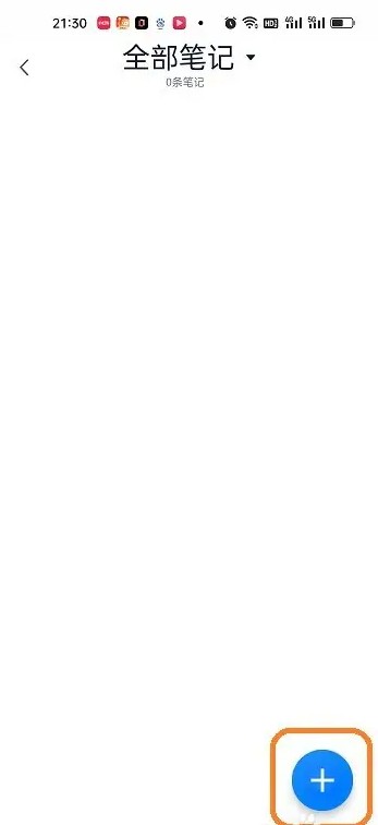 切换到全部笔记页面以后,点击【+】按钮。