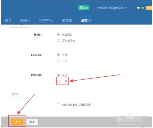 189邮箱app怎么设置自动回复,点击上面的设置,进入,点击下面的自动回复,点击开启,输入自动回复的文字。点击左下角,保存,设置成功,如图所示。