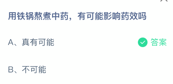 以上就是用铁锅熬煮中药,有可能影响药效吗?支付宝蚂蚁庄园2026年1月21日答案最新,更多相关攻略,请关注3dm手游网更新!