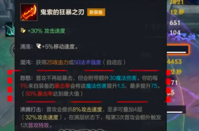 满层鬼索之怒:每3次普攻触发两次攻击特效;近战英雄层数达一半时,下次普攻直接叠满