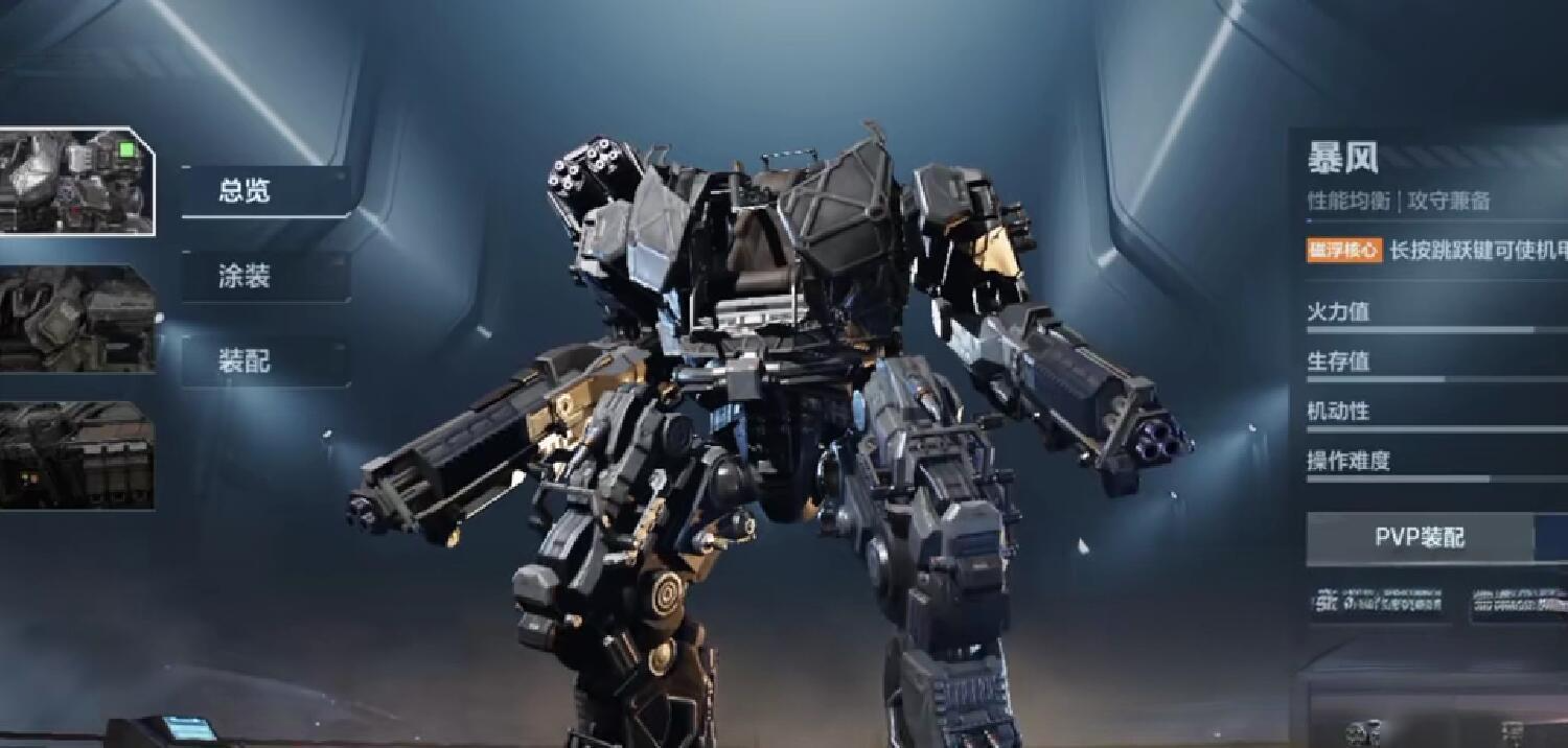 暴风这架机甲是一架以敏捷著称的机甲,它有着极为强悍的机动性,在战斗的时候,只要按住跳跃键一会还能够让机甲悬浮在空中攻击敌人,在地面火力形成压制的时候,利用悬浮能力可以直接将火力压制的压力给消减掉,给暴风搭配武器时,这里建议选择伤害更加稳定的双联装啄木鸟步枪,此外在给配备上带有锁定追踪能力的t3型追踪火箭也是非常不错的哦。