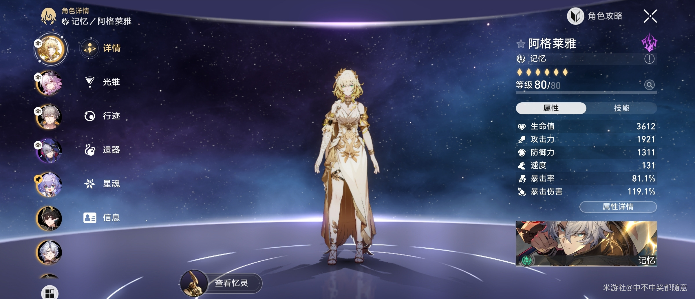配队:阿格莱雅、长夜月、记忆主、貊泽