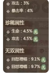 ①优先选择:伤害加成、爆伤、攻击百分比、威仪