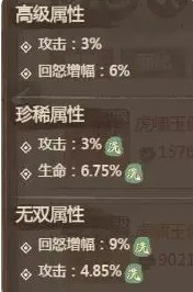 ③解析:辅助僚属需确保生存和技能释放频率,回怒增幅和生命百分比是核心,攻击百分比和威仪根据技能需求选择。