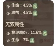③解析:吕布输出能力强,伤害加成和生命百分比是核心,物理减伤增强抗伤能力,攻击百分比和威仪可提升输出和控制效果。