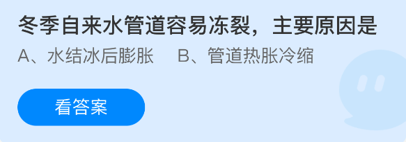 以上就是冬季自来水管道容易冻裂,主要原因是?支付宝蚂蚁庄园2026年1月23日答案最新,更多相关攻略,请关注3dm手游网更新!