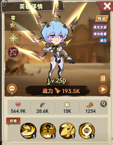 角色“零”拥有强大的全场景适用性。其核心技能包括:【刀锋之舞】对随机两名敌人造成高额伤害,并基于目标已损生命追加伤害,对高血量目标可附加眩晕;【束缚装甲】大幅提升自身真实伤害、暴击等属性并免疫眩晕;【磨锋之刃】使普攻锁定最低血敌人,吸收其攻击力并回复生命;【暴走模式】在敌人退场时回复生命与能量,并永久提升真实伤害。