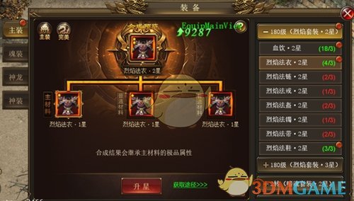 2、与主装备同名同品质并且极品值高于主装备的装备才可以作为祭品淬炼。
