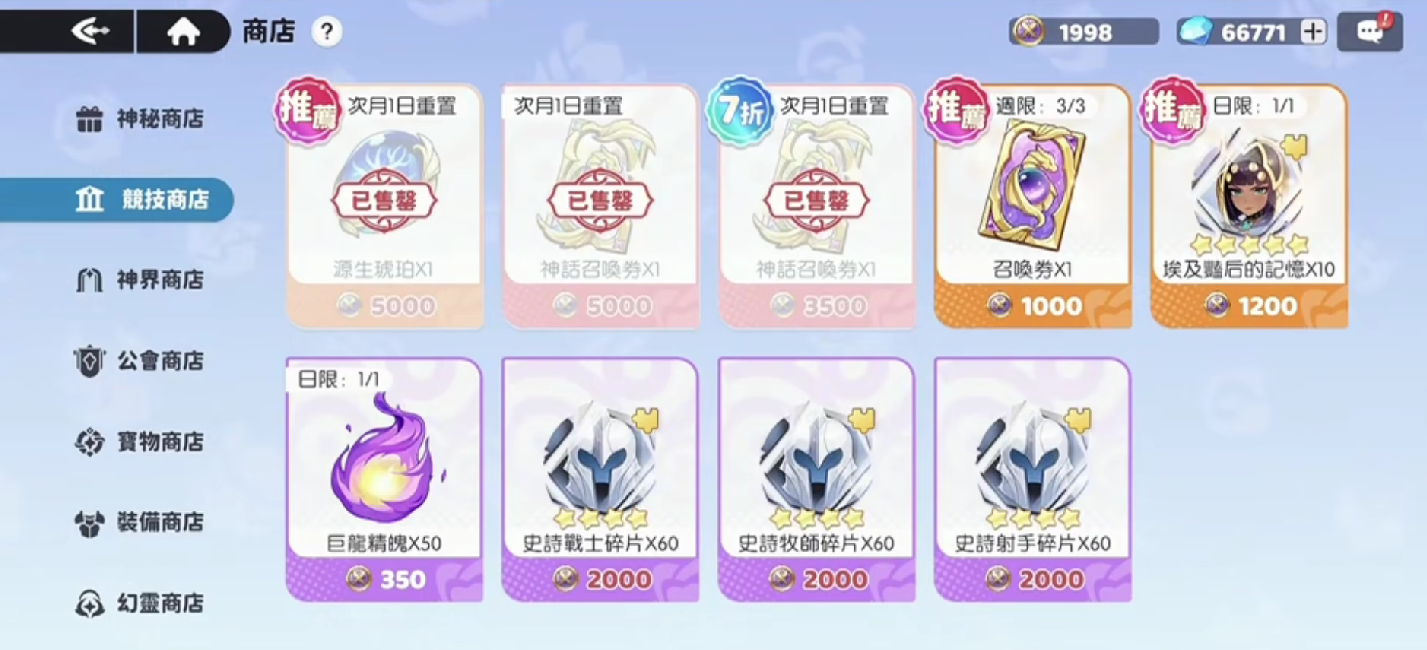 玩家如果想要拥有这些装备的话,通常情况下直接完成推图或者是每日每周的常规副本,这些其实能够帮助玩家快速的获取基础的装备,还能够有效地强化材料。玩家也能够参加寻宝活动,这里主打的就是达到了指定的寻宝次数之后,玩家将有机会获得稀有的资源。目前竞技场商店能够让玩家快速的获取竞技币,在这样的情况下,能够有效地兑换神话魔物以及升星方面的材料,这个主打的就是针对角色,但是也有机会可以获得对应的装备。