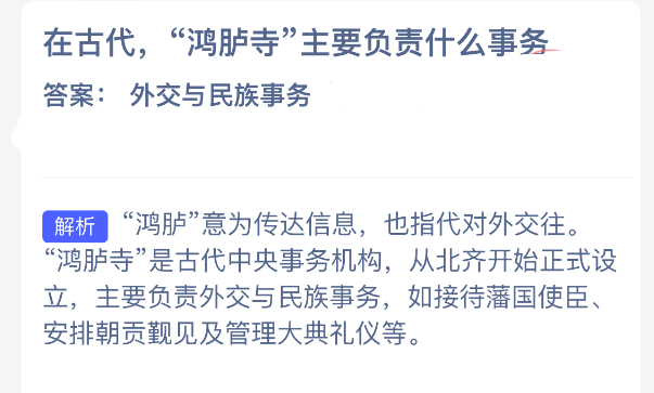 以上就是在古代,“鸿胪寺”主要负责什么事务?支付宝蚂蚁新村最新答案2026年1月23日,更多精彩内容,请点击关注3DM手游网更新!