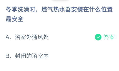 以上就是冬季洗澡时,燃气热水器安装在什么位置最安全?支付宝蚂蚁庄园2026年1月25日答案最新,更多相关攻略,请关注3dm手游网更新!