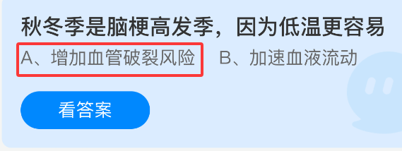 以上就是秋冬季是脑梗高发季,因为低温更容易?支付宝蚂蚁庄园2026年1月25日答案最新,更多相关攻略,请关注3dm手游网更新!