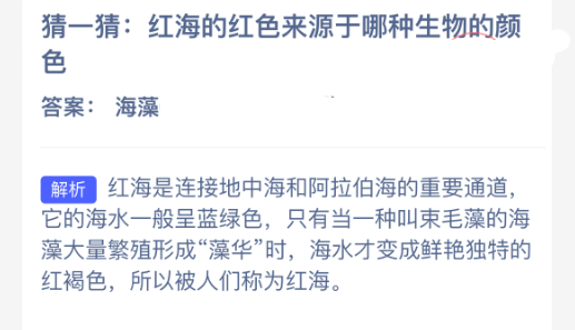 以上就是猜一猜:红海的红色来源于哪种生物的颜色?神奇海洋今天答案最新2026年1月25分享,更多相关攻略内容,请点击关注3DM手游网更新!