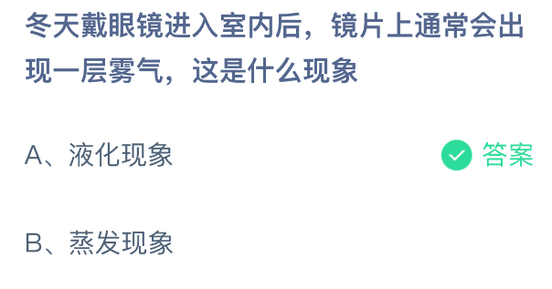以上就是冬天戴眼镜进入室内后,镜片上通常会出现一层雾气,这是什么现象?支付宝蚂蚁庄园2026年1月27日答案最新,更多相关攻略,请关注3dm手游网更新!