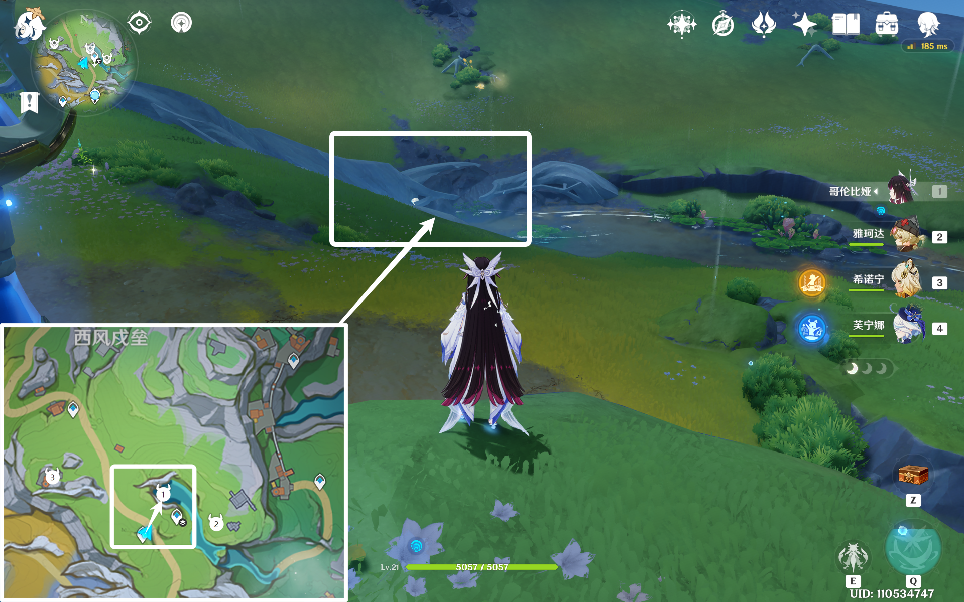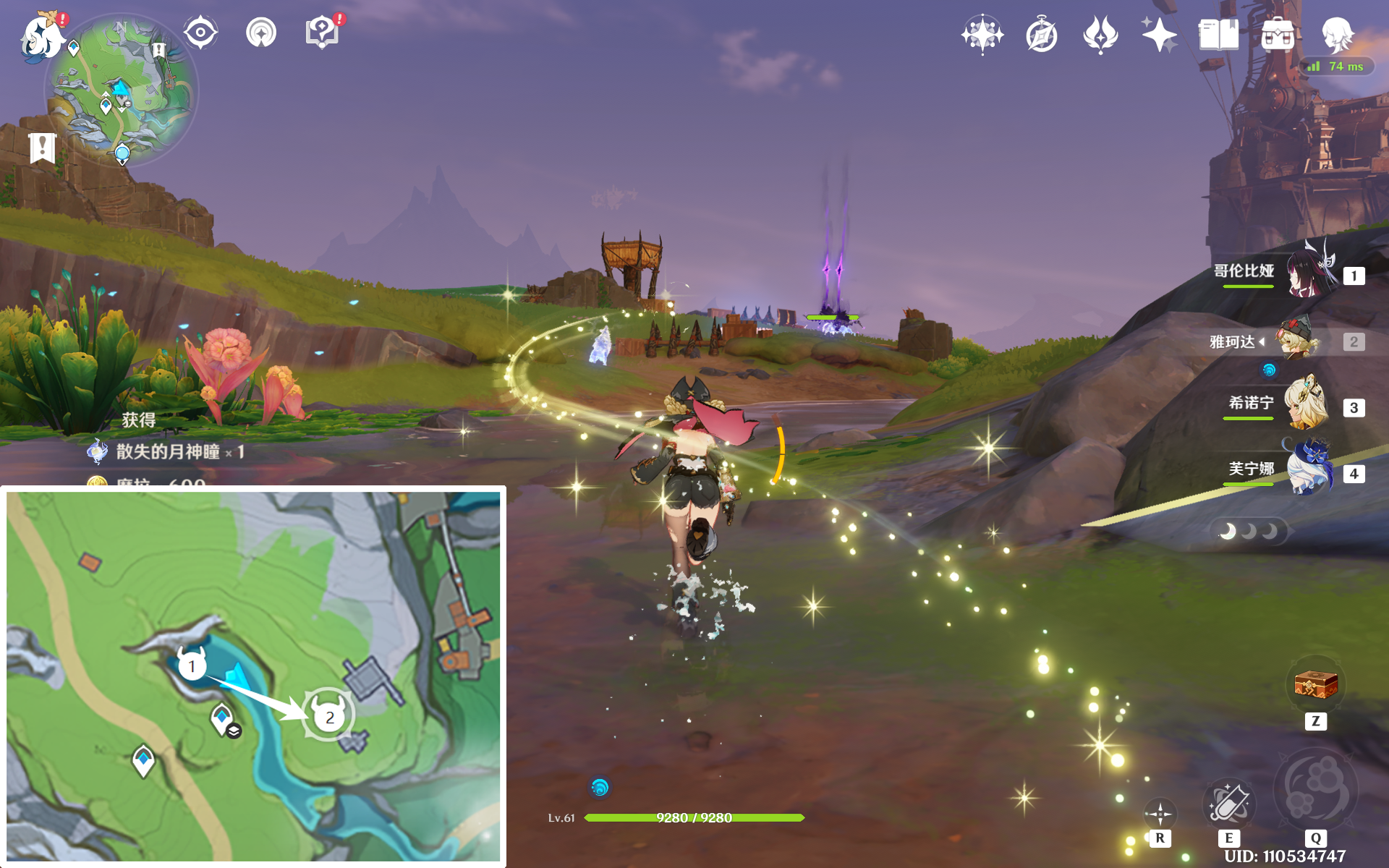 来到挪德卡莱传送点,随后朝着小河的位置走。如果神瞳没捡朝着神瞳定位走即可。