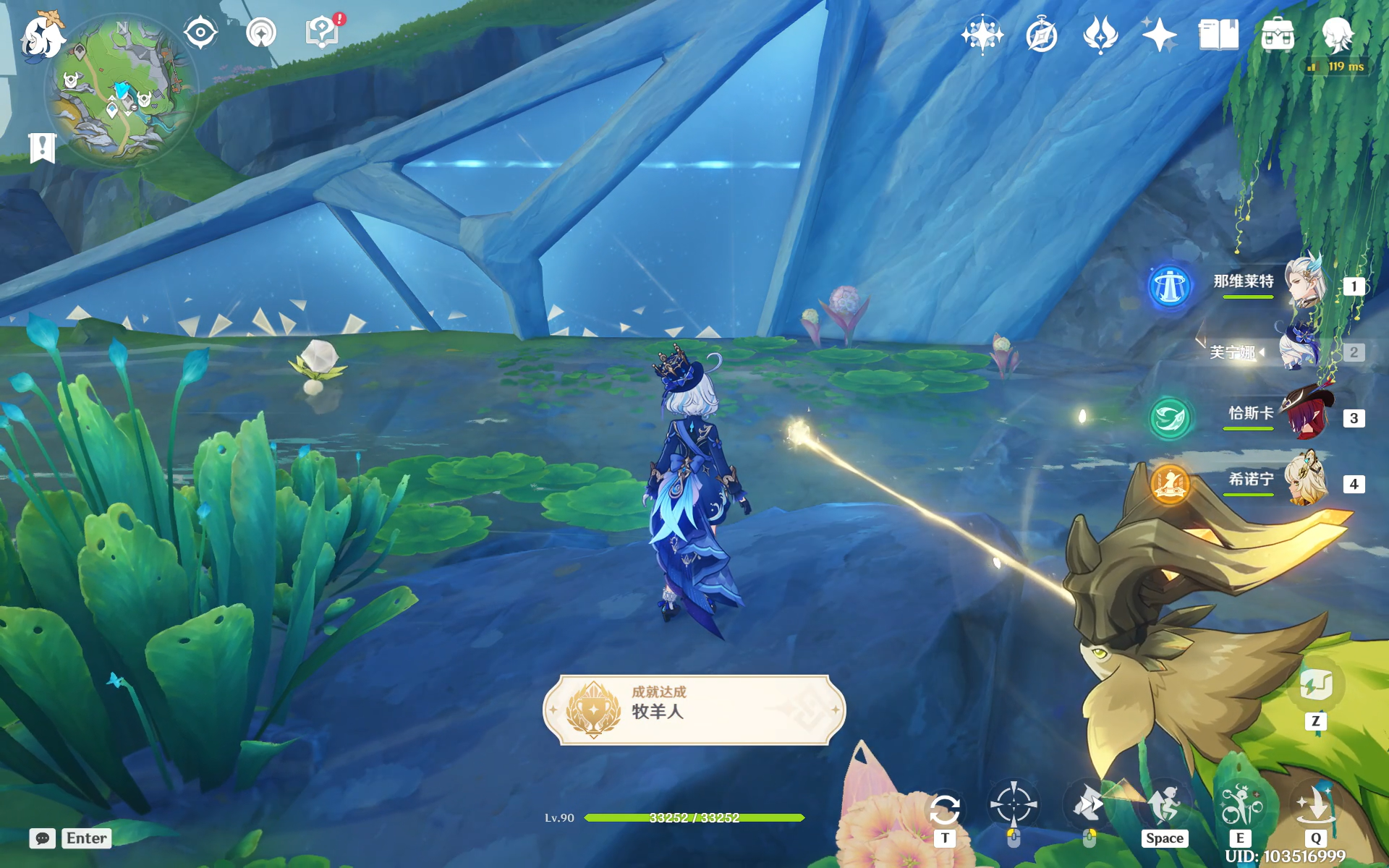 此时可以搜成就列表有没有「牧羊人」成就,如果没有的话可以挂机一下,一直牵着大约20秒后就能获得成就「牧羊人」。
