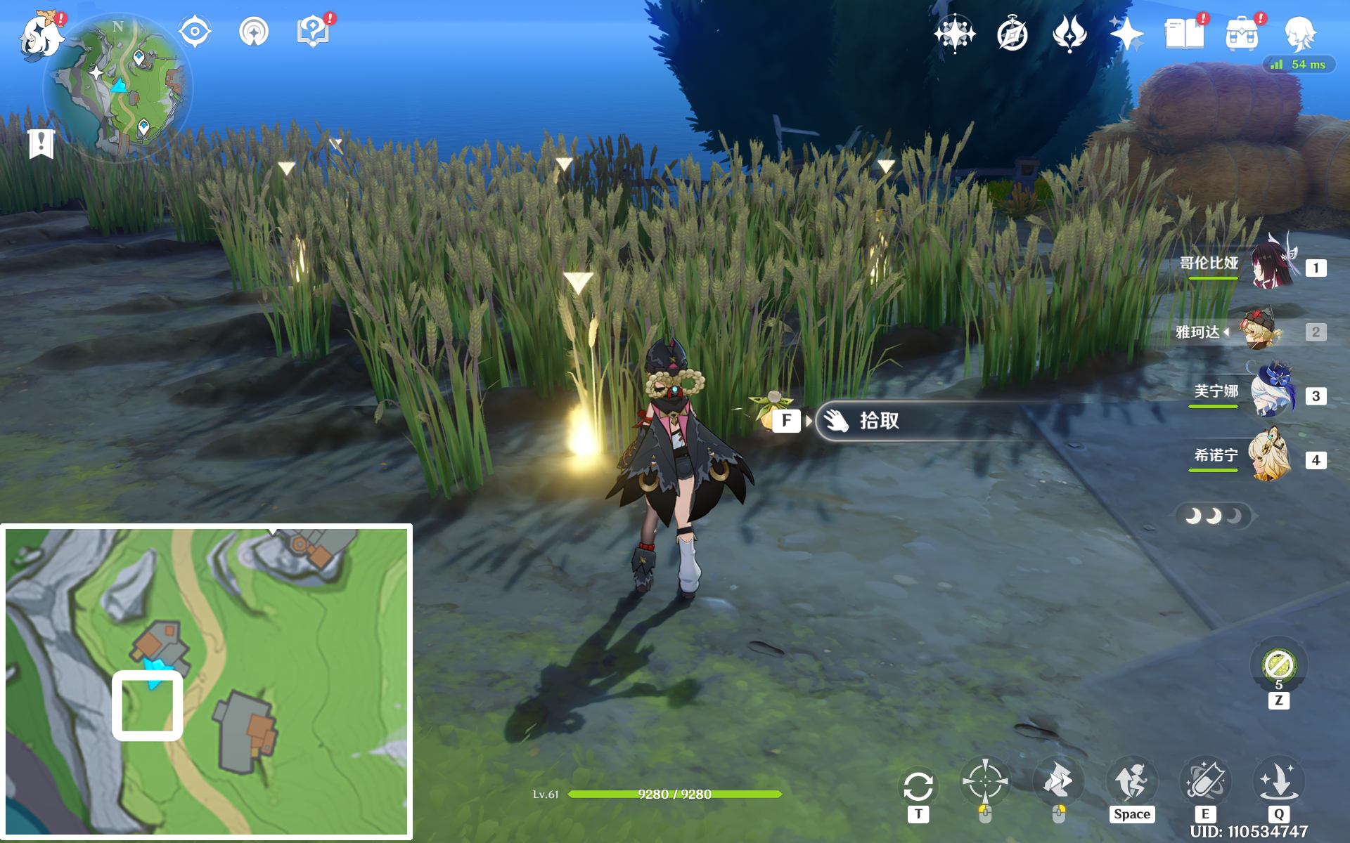 对话后她会让旅行者帮忙收麦子,不过不着急,在她小屋和麦田旁的草棚中有一个普通的宝箱。