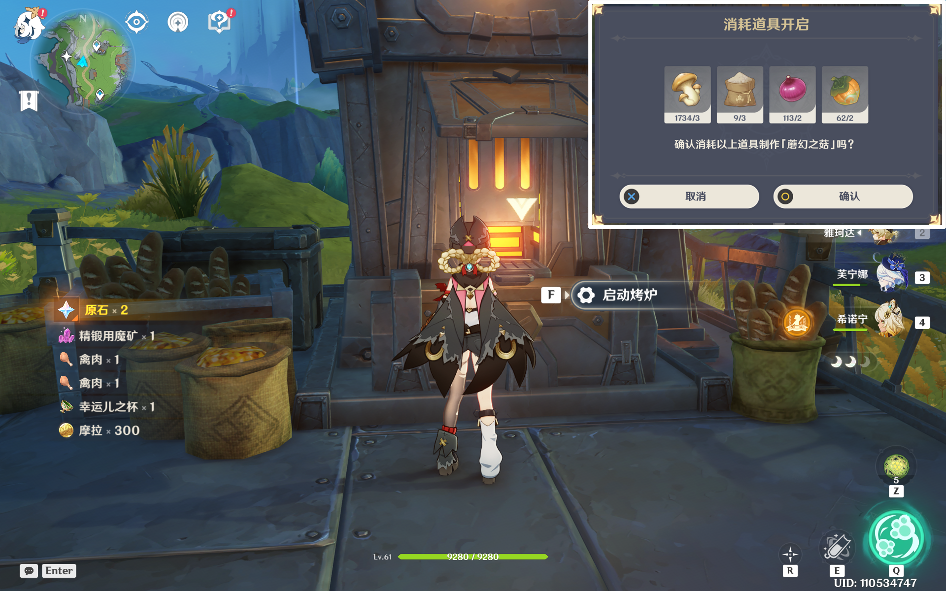 靠近机器别走,一出现「停止烤制」就立刻点击停止,即可获得「美味的蘑幻之菇」。