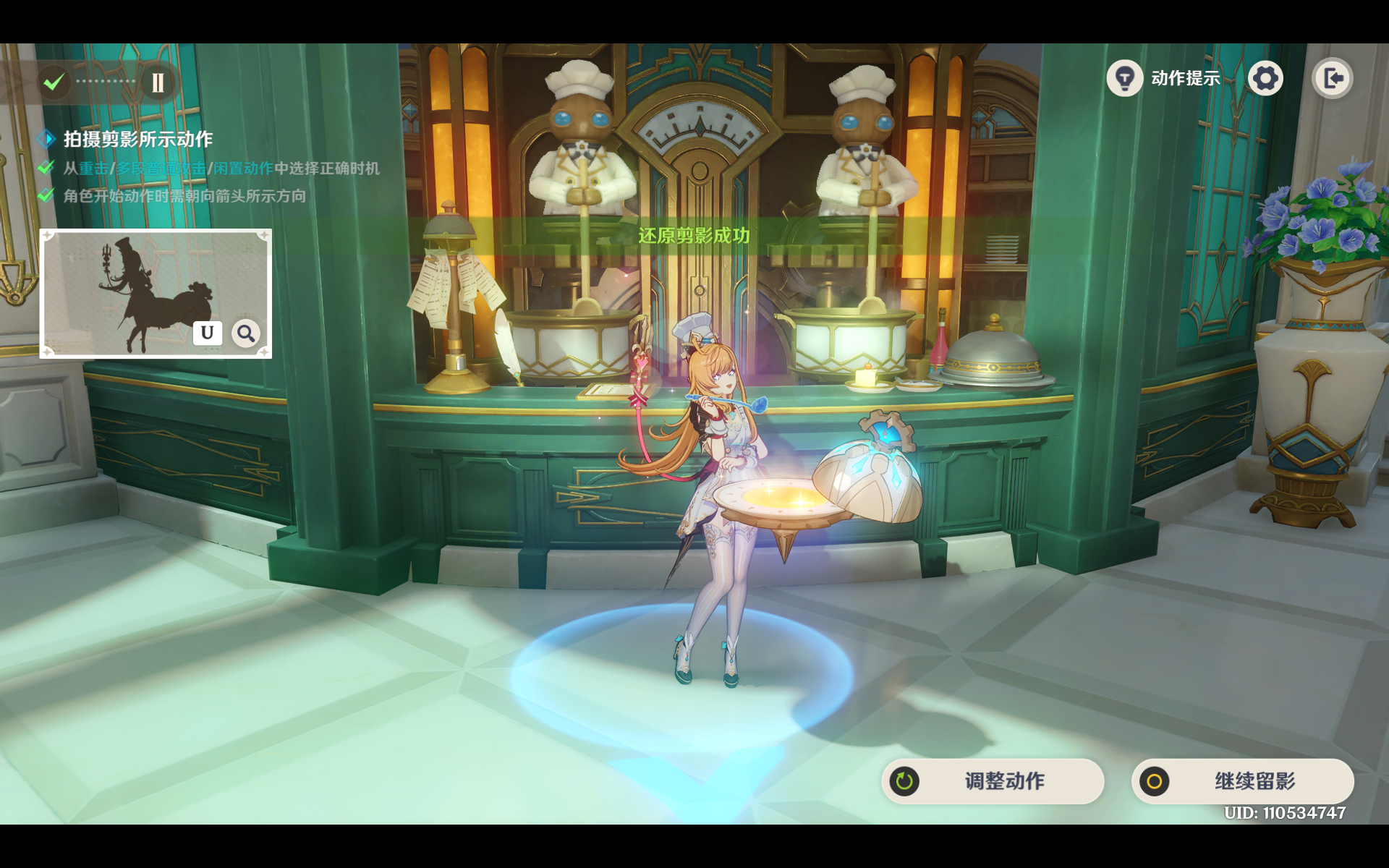 在闲置动作1爱可菲品尝时按快门即可
