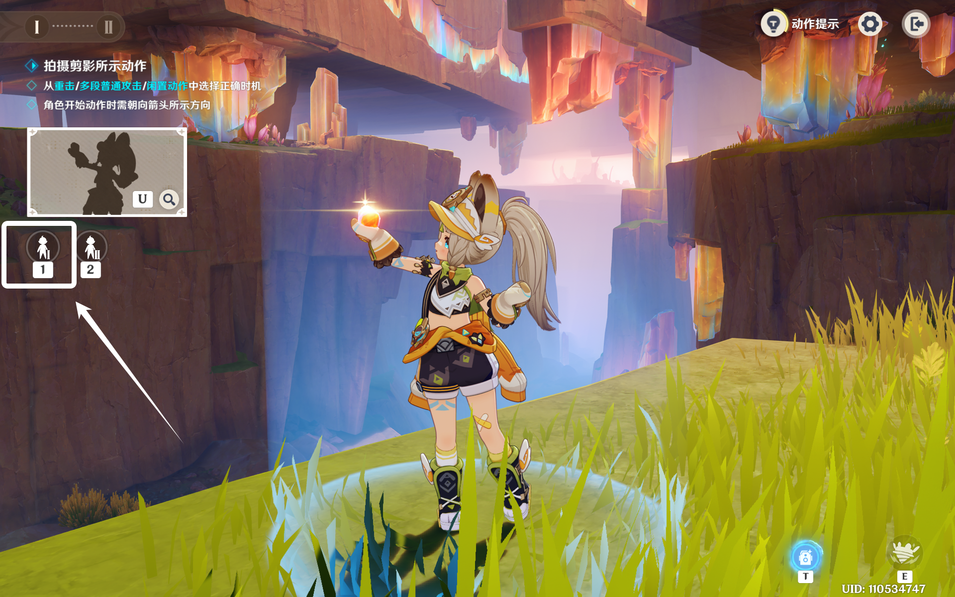 闲置动作1收尾时拍摄即可